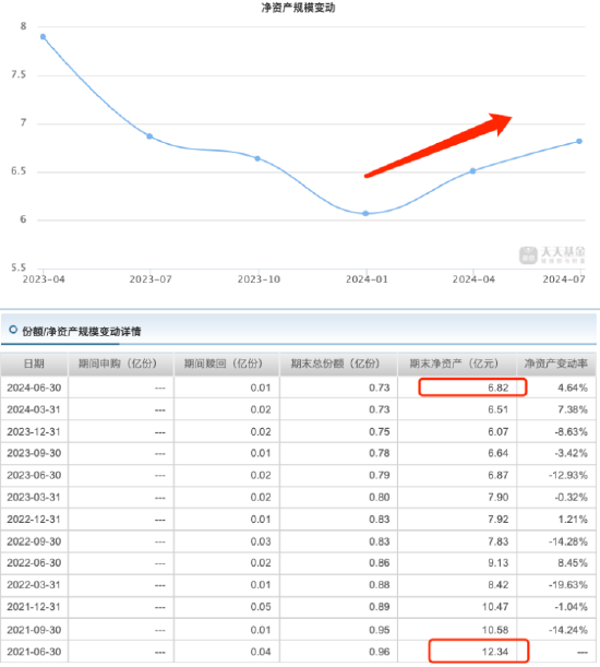 从基金规模表现来看,东方红启恒三年持有混合A从去年一季度开始,规模水平便不断下跌。转折点一直到去年四季度,规模才开始回暖上升。截至今年二季度末,东方红启恒三年持有混合A期末净资产为6.82亿元,比上期增加4.64%。但与2021年6月30日相比,规模仍有5.52亿元的差距。值得一提的是,该基金是上述产品中规模最大的产品,基金规模达100.52亿元。